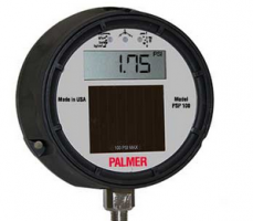 Palmer Instruments, Inc. announces the addition of a new solar powered pressure gauge to its line of industrial temperature and pressure measurement solutions. Ideal for those who prefer the readability of digital, the Palmer Solar Pressure Gauge has a 5/8" high LCD screen. Powered by a built in solar cell, even a flashlight is enough to power this unit; batteries never need replacing. Models are available with or without 4-20 mA transmitter capability for connection to a remotely installed controller or recorder. IP65 weatherproof rating makes this gauge ideal for exterior installations.